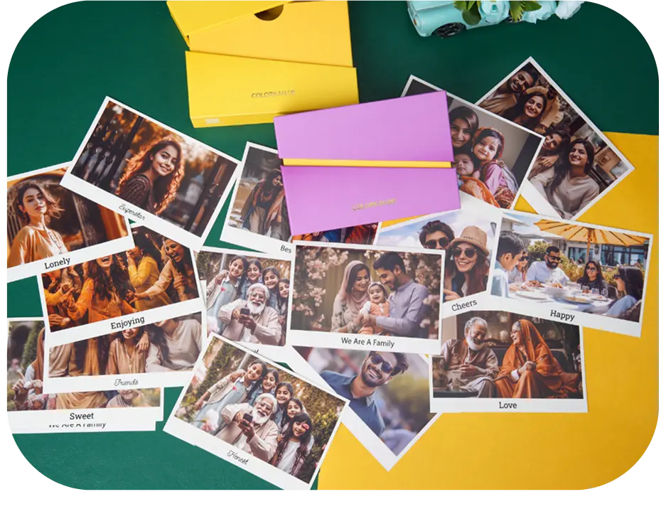 Why settle for boring prints when you can have a blast with Color Kahar? No need to search ‘photo prints near me’ anymore. Tap into our app and voila – create stunning, personalized gifts and quality photo prints straight from your phone! With doorstep delivery across Pakistan and designs that dazzle, your memories are just a tap away from becoming breathtaking keepsakes. With privacy as our pinky promise, we use encrypted cloud storage to safeguard your memories and erase them once they are produced and approved by you!