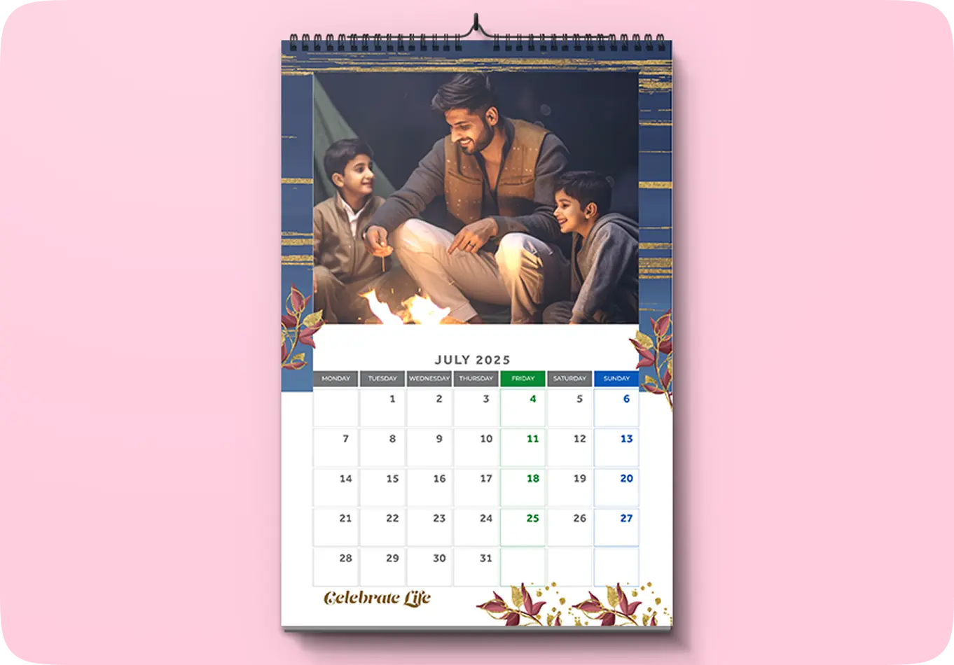 Our photo calendars serve as personalized works of art that serve as a reminder of your most treasured moments, in addition to being useful tools for scheduling. Our premium calendars, which are printed using reputable online digital printing services, come in a portrait 12″ x 18″ format to meet your needs and keep you motivated and organized throughout the year. Enjoy 50+ sophisticated designs for each season, all skillfully created by our design team. Using the magic of your memories, create a personalized photo calendar that makes you smile all year long.