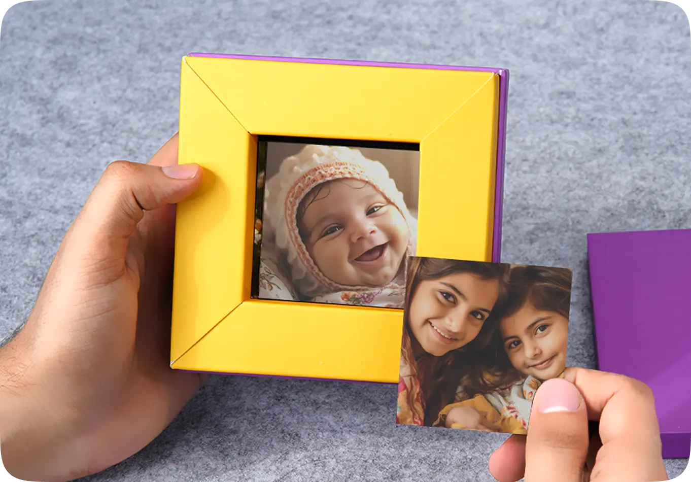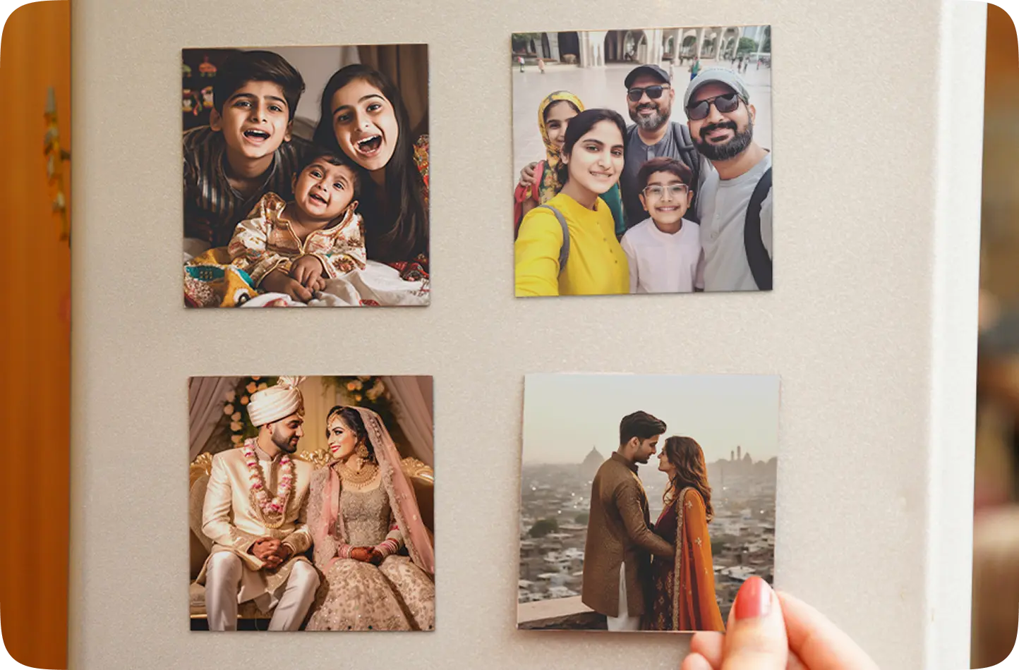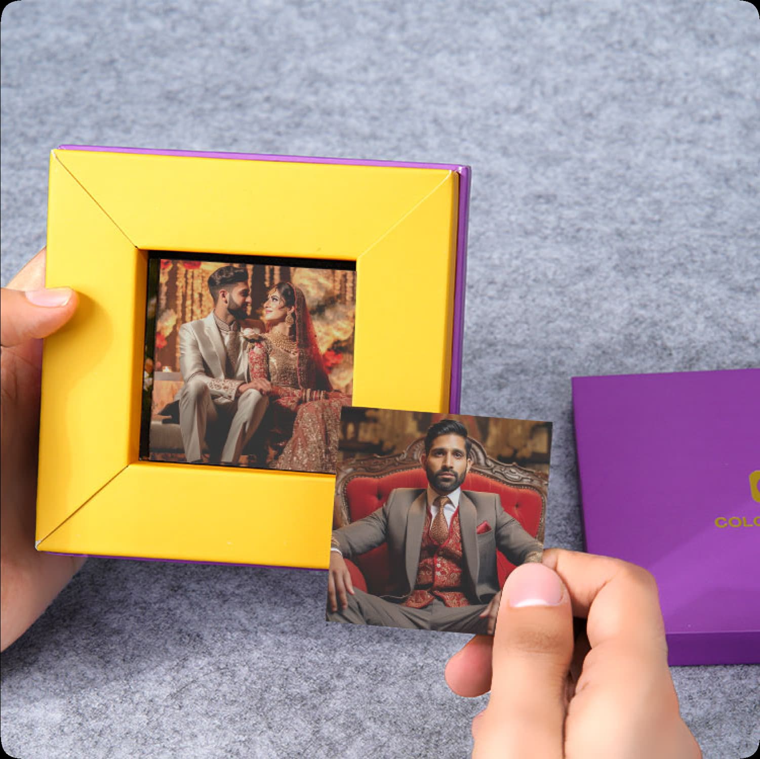 Order Color Kahar photo magnets online to transform your refrigerator into a gallery of memories! For countless arrangement options, select the ideal 3″ x 3″ size and place your order in bulk. UV printing is used in our online digital printing services to produce vivid, long-lasting results that add character and warmth to any area.