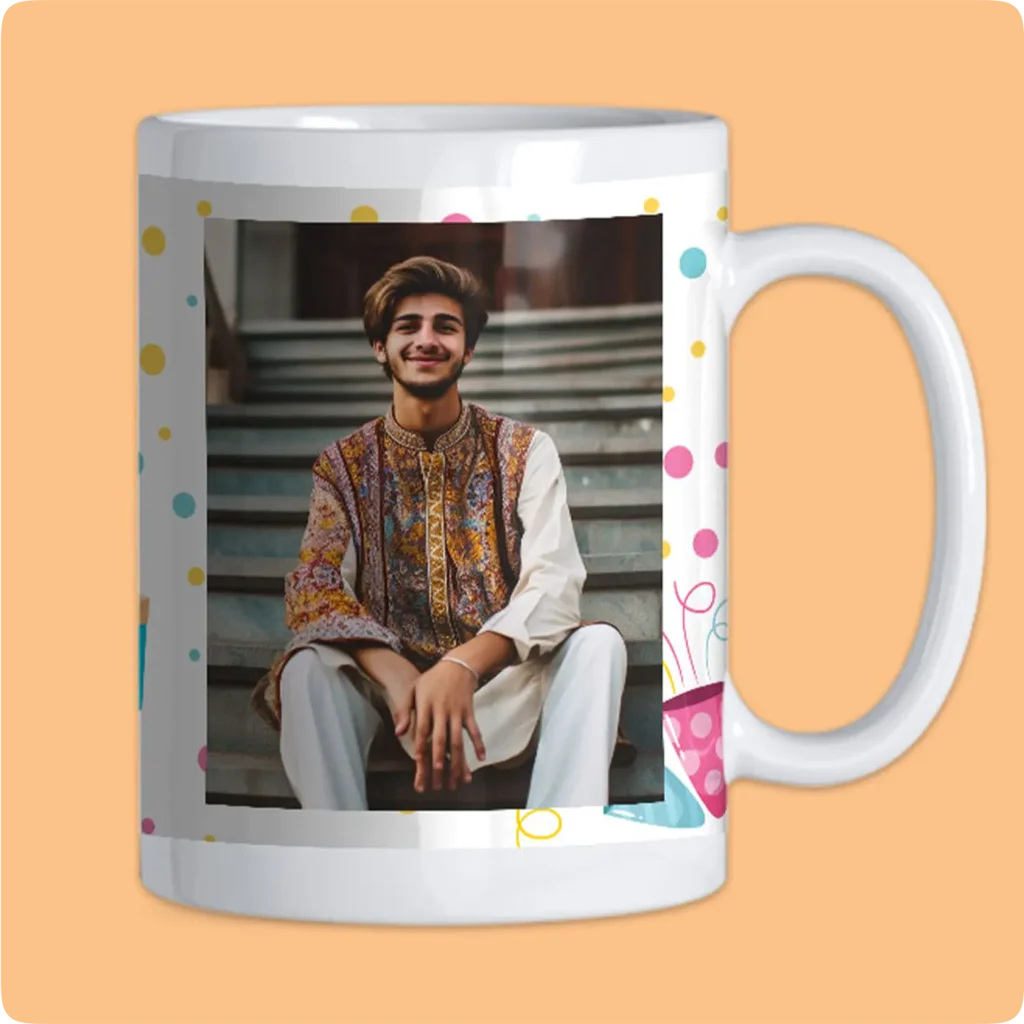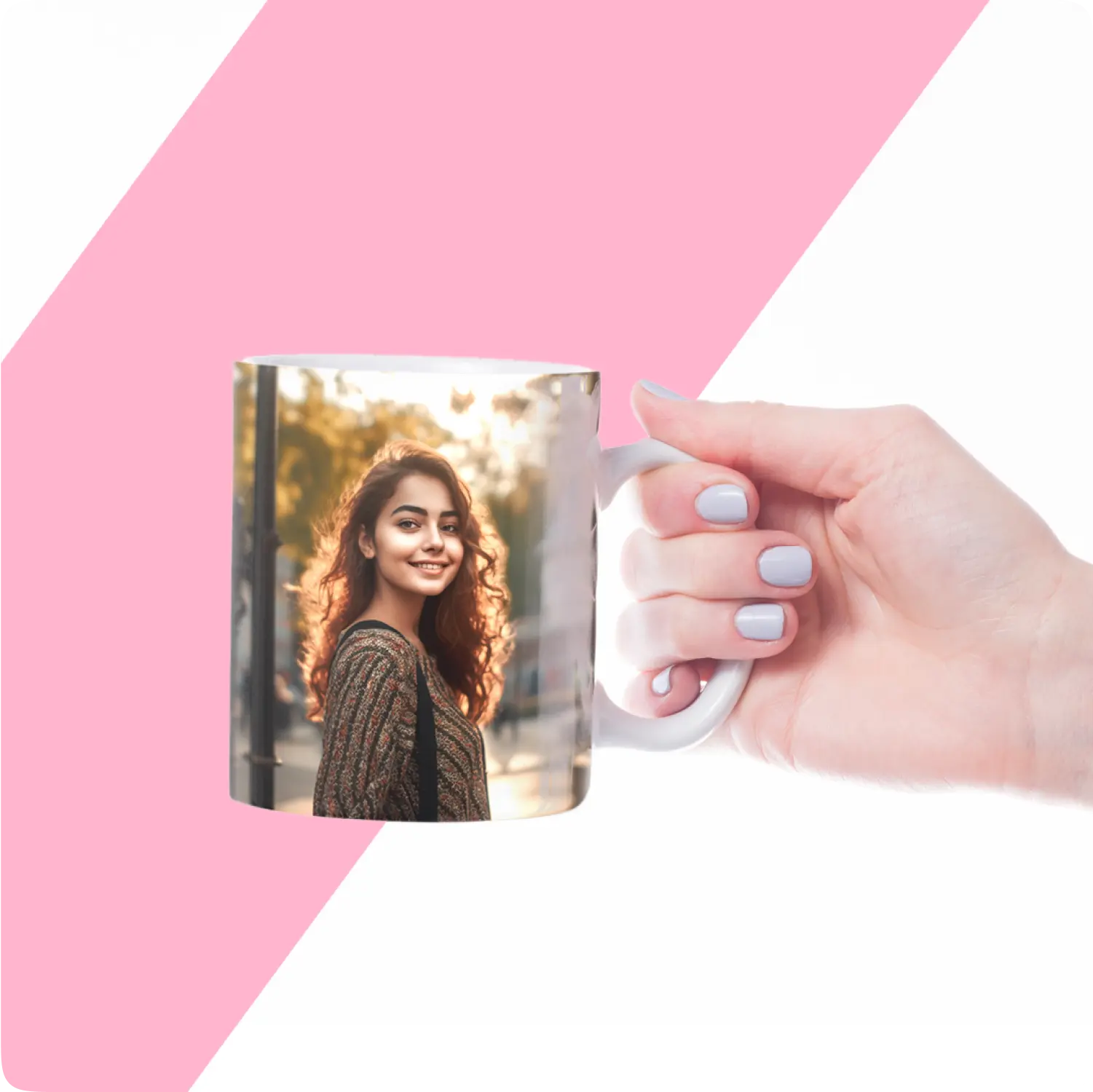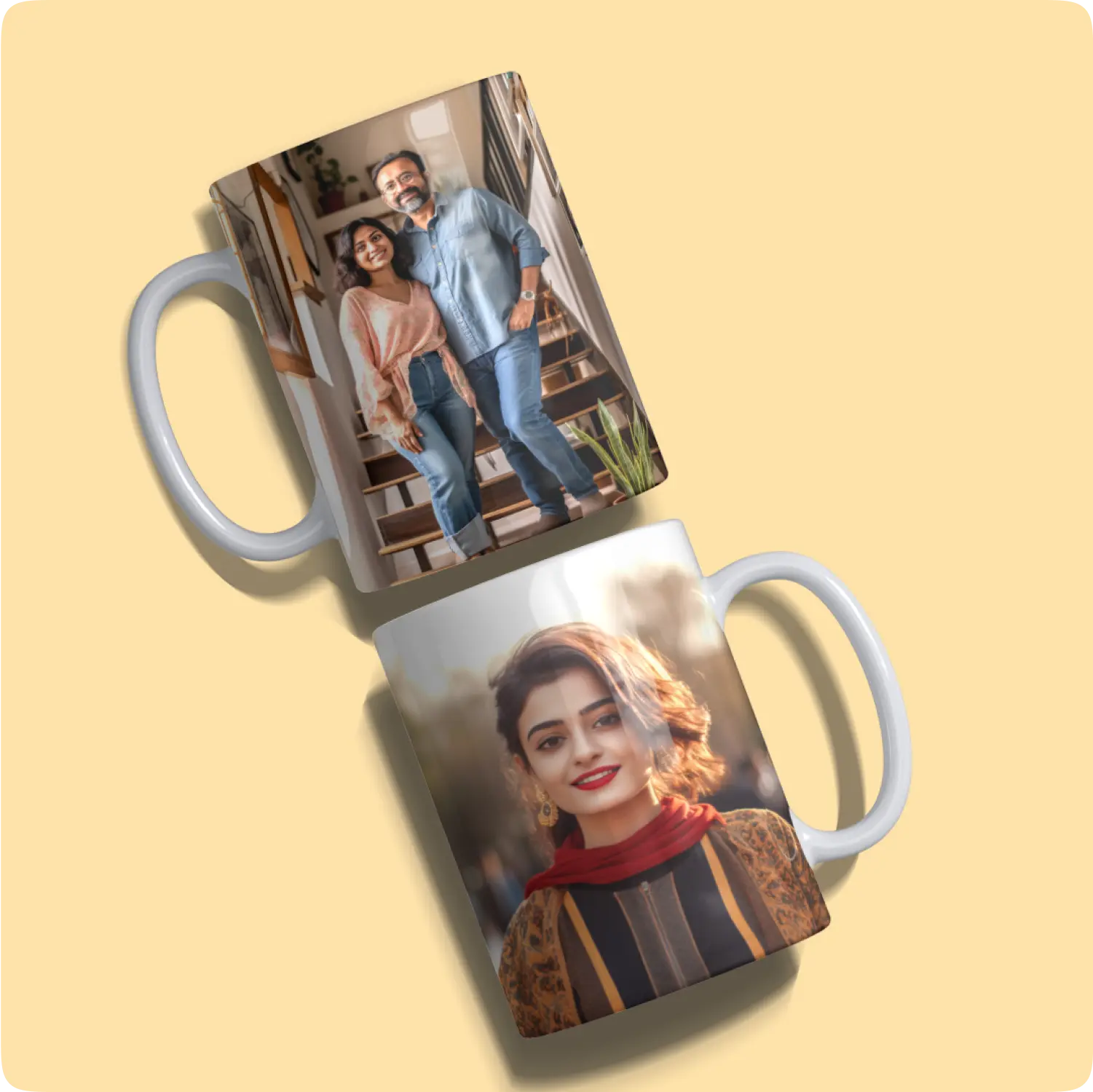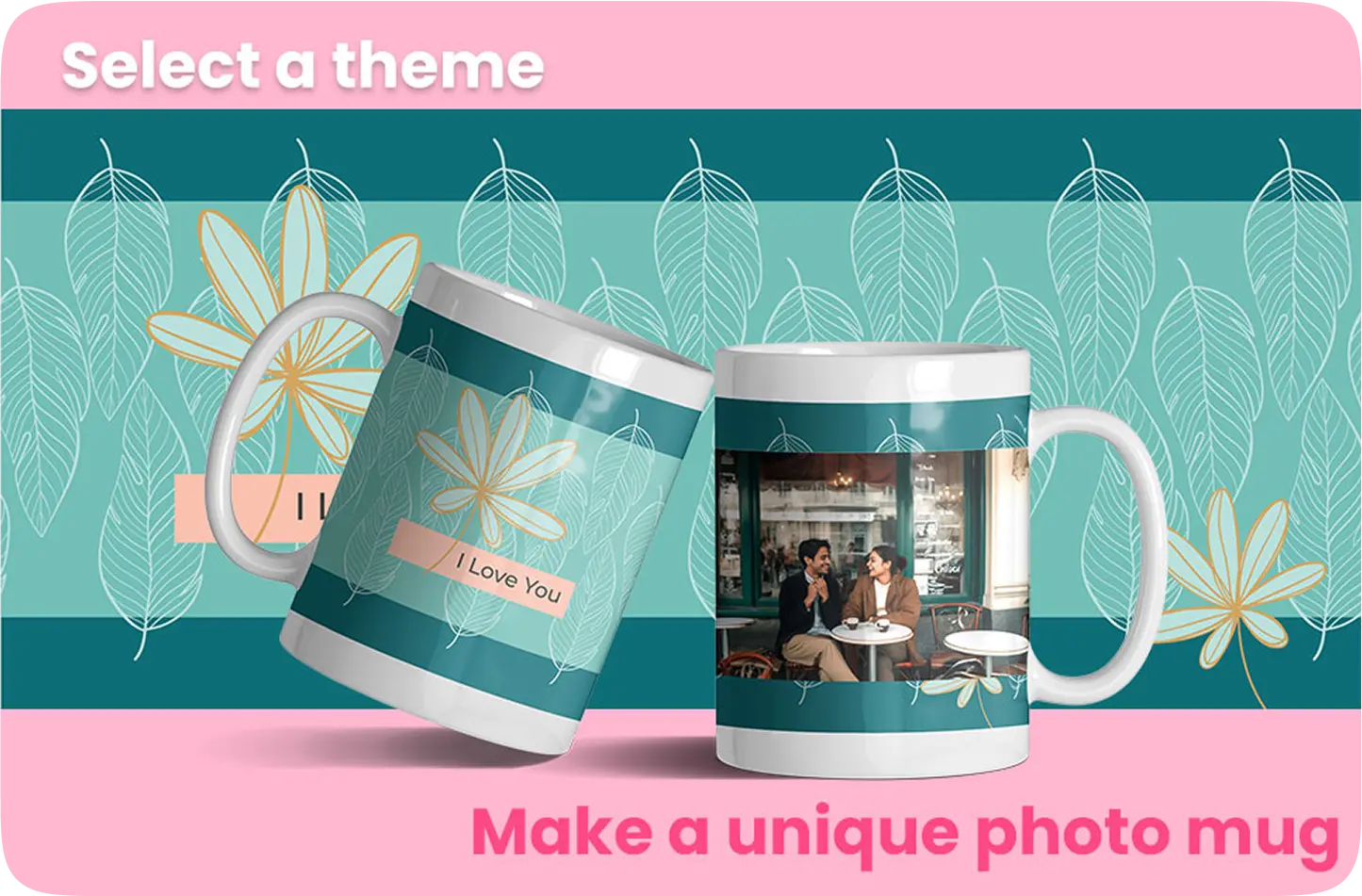 The perfect present for your loved ones is our premium personalized photo mug. Create a personalized coffee mug with lovely coffee mug themes right from your phone with our user-friendly app and the best online photo printing service.