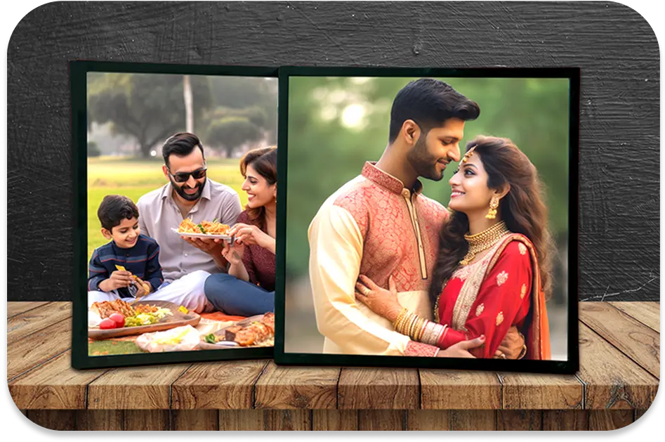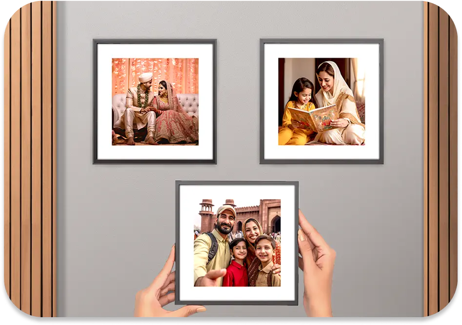 Select your best shots for the tiles, choosing from bold or stretched photo styles exclusively through the Color Kahar app for a custom wall display.